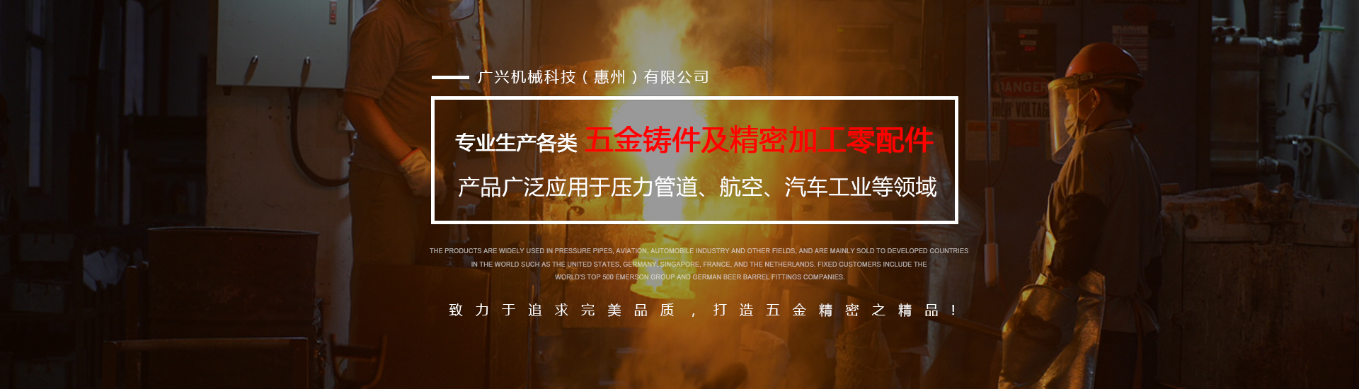 公司專業(yè)生產(chǎn)各類五金鑄件及精密加工零配件,可熔煉材質(zhì)為全系列不銹鋼及碳鋼,主要生產(chǎn)材質(zhì)有304、316316L、17-4430、409等,年生產(chǎn)各種不銹鋼鑄件1000余噸。產(chǎn)品廣泛應(yīng)用于壓力管道、航空、汽車工業(yè)等領(lǐng)域,主要銷往美國、德國、新加坡、法國、荷蘭等世界發(fā)達(dá)國家,固定客戶有世界500強(qiáng)艾默生集團(tuán)及德國啤酒桶配件公司。